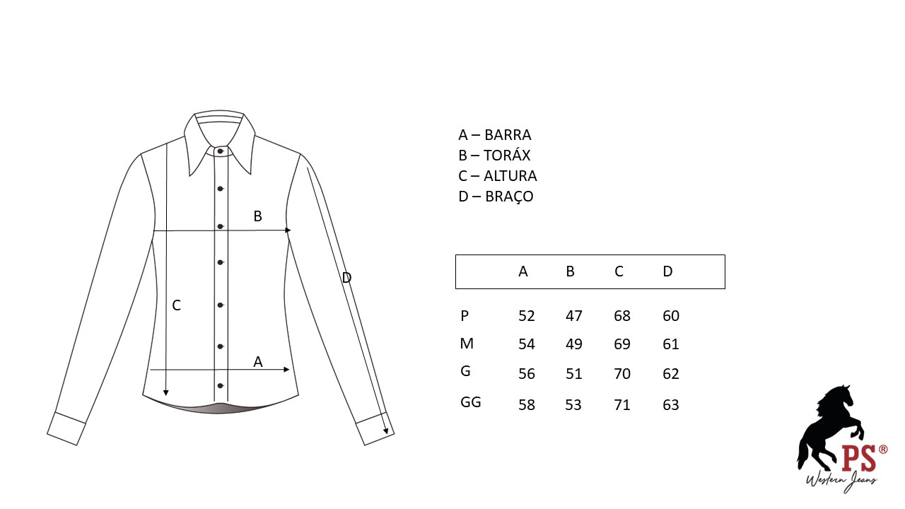 Os bordados em destaque dão o toque autêntico da marca: ferraduras e brasão na parte frontal, o logo Puro Sangue bordado nas costas e detalhes também nas mangas. Um design exclusivo que traduz estilo country com identidade. Além disso, o tecido leve e respirável assegura conforto tanto no dia a dia quanto em eventos especiais, como rodeios e festas western.